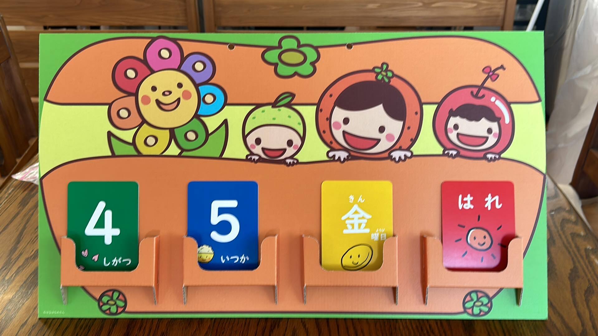―月、日、曜日、天気を楽しく学べるカードを掲示する台紙が登場―